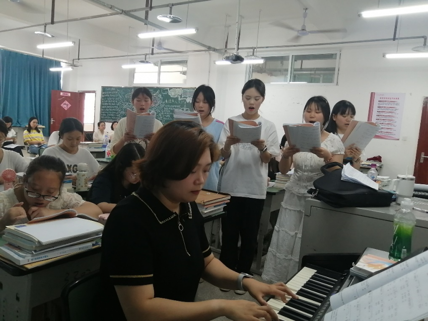 胡漫老师的声乐课《绒花》以红色经典歌曲为载体,结合声乐技巧训练与革命历史教育,用歌声传递爱国精神,课堂情感充沛、感染力强;