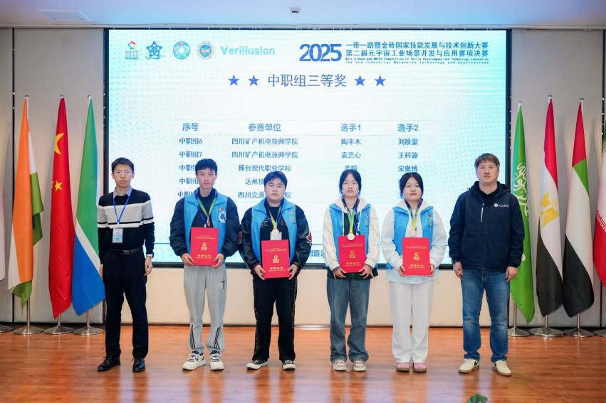 发布时间:2025-11-28在近期举办的2025一带一路暨金砖国家技能发展与技术创新大赛——第二届元宇宙工业场景开发与应用赛项决赛中,学院机电工程系师生表现突出,荣获多项荣誉,展现了学校在技术技能人才培养方面的扎实成效。