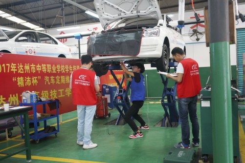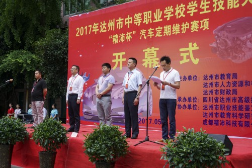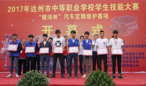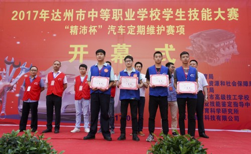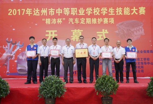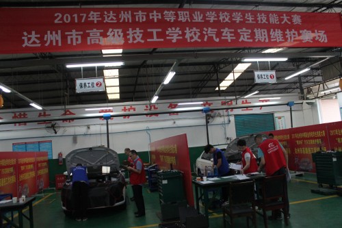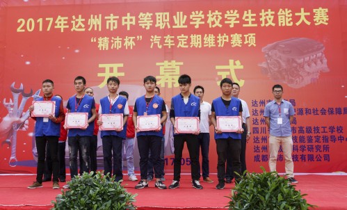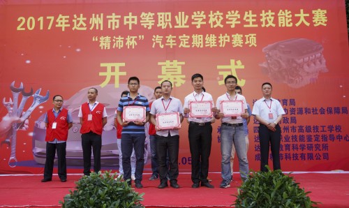 开幕式后,来自全市12所中职学校的24名选手在市高级技工学校“汽车类公共实训基地”进行了“精沛杯”汽车定期维护项目的竞赛。经过激烈角逐,达州市高级技工学校和达县职业高级中学荣获一等奖。
