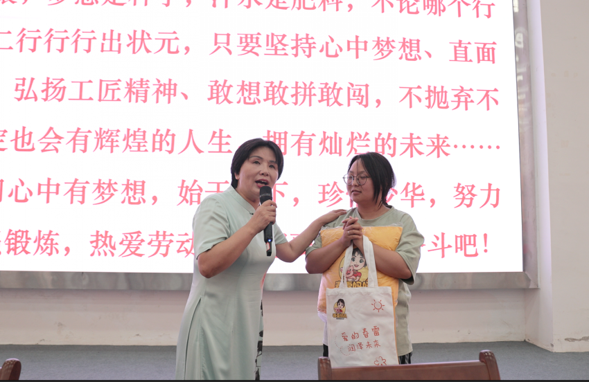 张春雷以《用劳动托起梦想 匠心养出放心猪》为题,为师生们带来了一场感人至深、催人奋进的报告。她动情地回忆起年少时家境的贫寒,那些为生计奔波的岁月。谈及创业历程,她更是感慨万千,用质朴的语言描绘了那段筚路蓝缕的岁月:从最初的资金短缺、技术匮乏、市场开拓的重重难关,到无数个在猪舍、饲料车间里与员工并肩作战、披星戴月的日子。三十载风雨兼程,三十载初心不改,这份对劳动的执着信仰和对工匠精神的极致追求,最终引领着她将企业从无到有、由小做大,发展成为达州市饲料行业的龙头,更跃升为农业产业化国家级重点龙头企业。张春雷劳模的亲身经历,如同一部生动的奋斗史诗,让在场师生深刻体悟到劳模精神、劳动精神、工匠精神所蕴含的磅礴力量——那是在困境中百折不挠的毅力,是在平凡岗位上追求卓越的执着,是用双手创造美好未来的坚实信念。