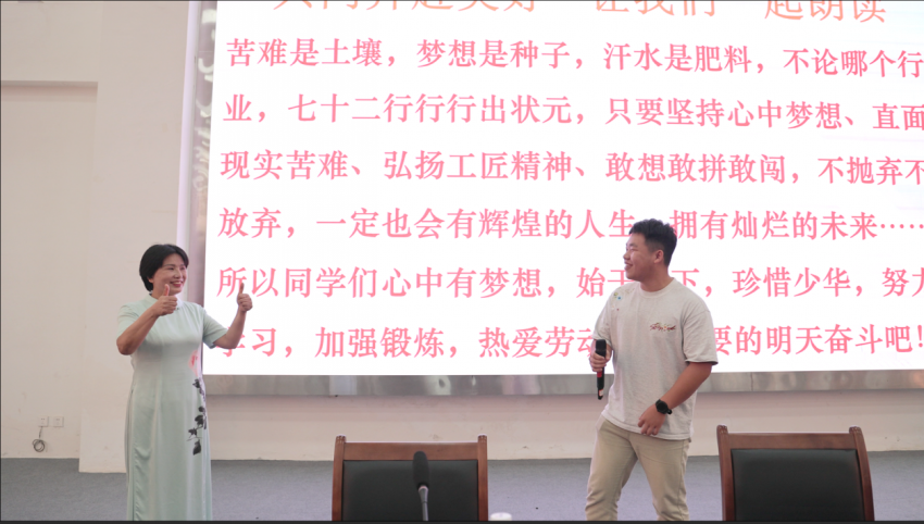 活动尾声,张春雷热情邀请学子们畅谈未来理想。深受鼓舞的学生们纷纷响应,踊跃发言,抒发技能报国的壮志豪情,现场气氛热烈,达到高潮。这场宣讲不仅传递了劳模榜样的精神伟力,更在莘莘学子心中点燃了信念之火——以精湛技艺照亮职业前程,用诚实劳动浇筑人生梦想。