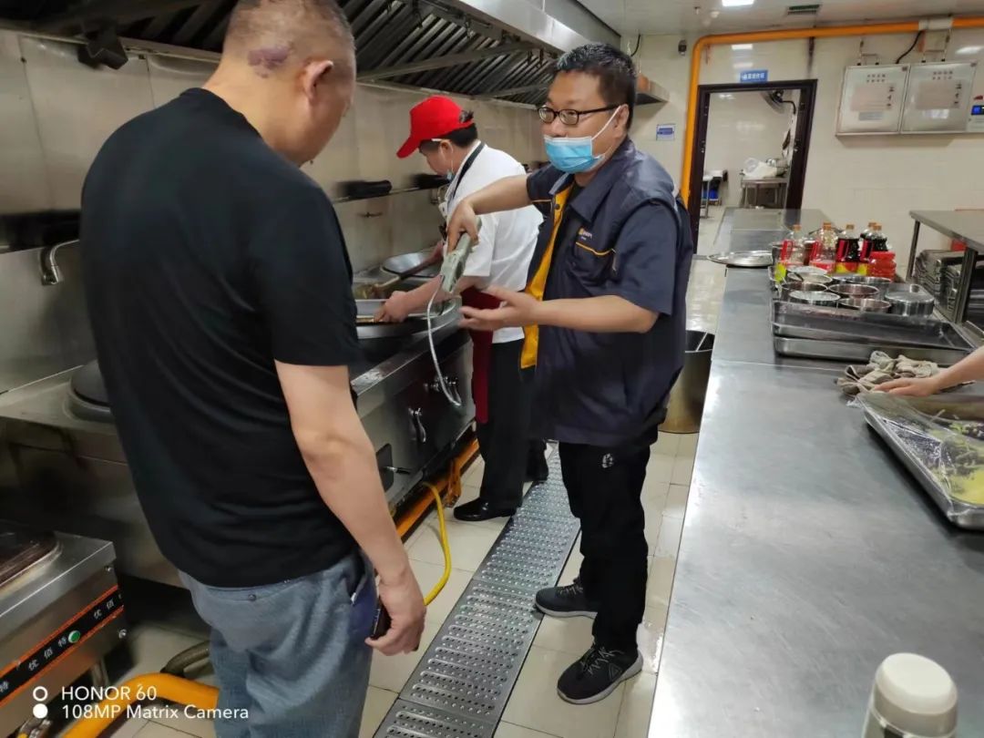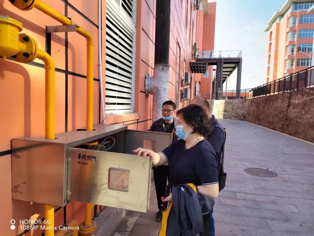 排查过程中后勤服务科邀请了华润燃气公司专业技术人员来院进行实地勘察,专业人员在安全制度及操作规程上墙位置、燃气来向及阀门开关标识、个别不锈钢波纹软管存在开三通现象三个方面提出了整改建议。后勤服务科随即根据专家建议,结合市教育局文件要求迅速拟订整改计划进行整改。截止4月29日已完成两项整改,进一步完善了燃气安全制度和操作规程并在适当位置粘贴上墙,补齐了燃气管道上燃气来气方向标识和燃气入户阀门开关标识牌。不锈钢波纹软管开三通问题根据华润燃气公司时间安排拟定于五月上旬由专业技术人员整改完成。