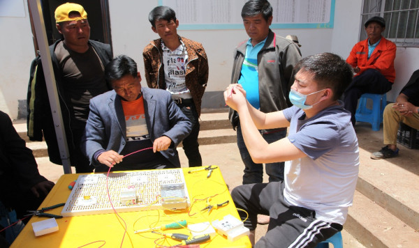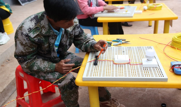培训过程中,考虑到学员文化基础差、学历低、年龄偏大、语言交流等具体困难,我院教师在教学过程中按照教学计划和教学大纲提炼适用于当地学员的知识点与技能点。采取“一对一指导、手把手教学”的模式,在学中做、做中学。因材施教将复杂的理论转化成直观形象的专业设备实训操练,使参加培训的学员学有所知、学有所用。通过培训,学员们掌握了常见电工工具使用、常见家用导线的连接、家庭单控、双控线路的安装、家庭用电安全及防火等实用性技能。此外,在培训过程中,我院教师在耐心传授专业技能的同时,积极与学员进行思想交流,帮助学员树立知识改变命运,技能成就未来的思想理念,引导广大学员脱贫先立志。