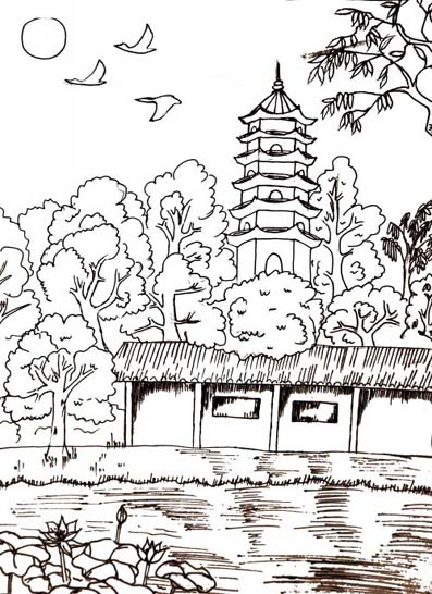 图为12级12班学生闫登会线描作品实物图     指导教师:黎明