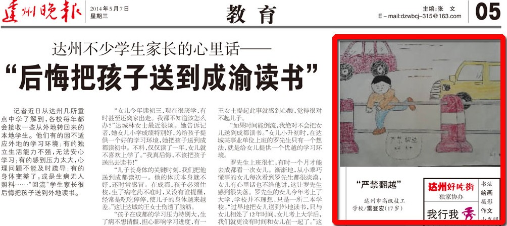 2014年《达州晚报》刊登的我校学生绘画作品