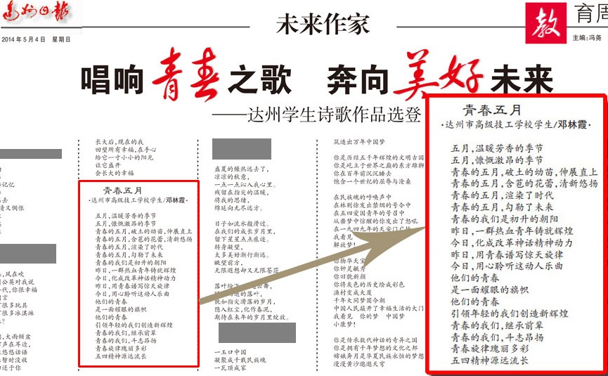 2014年《达州日报》刊登的我校学生作品