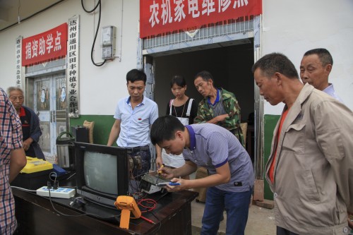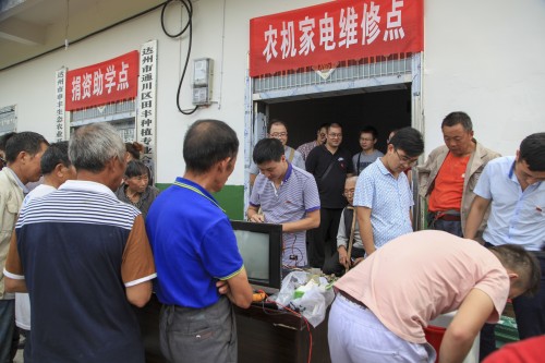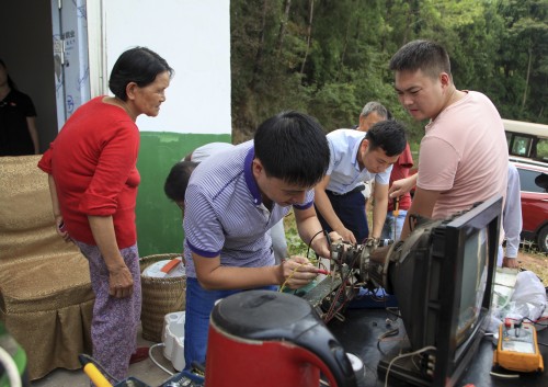 在农机家电维修点,闻讯而来的群众,有的抬着农机,有的扛着农具,有的搬来电视机,有的拎着小家电,把维修点围得水泄不通。汽车、机械、电气等专业的教师搬出焊机等维修设备工具,摆开阵势,一展身手。他们娴熟地排查故障,专业地换件焊接,几经摆弄,就修好了个个物件。为搞好维修工作,做到让群众满意,负责维修的老师们提前购买了价值近2000元的电子元器件、农机农具配件。因需维修的东西多,维修老师们忙得汗流浃背,顾不上喝水,甚至顾不上吃饭,免费维修农耕机、脱粒机、打米机、电视机、洗衣机、电脑、打印机、电热水器和电磁炉等小家电共30多件。一位老农背着修好的脱粒机,拉着维修教师的手说:“这几天正抢着收水稻,家里劳动力又在外打工,这下你们帮我大忙了!”。