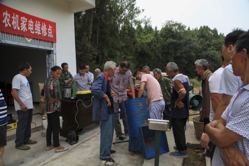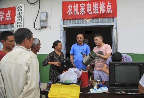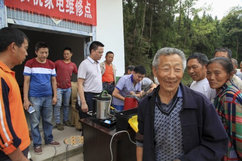 图为附近农户纷纷搬来需要维修的东西