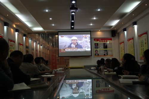 图为观看喜迎十九大专题片——《还看今朝 四川篇》