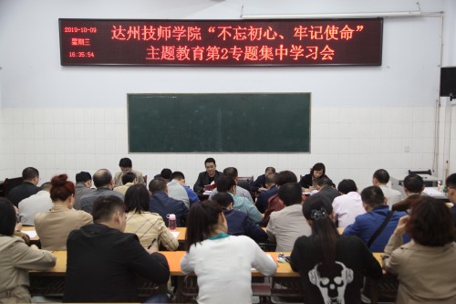 发布时间:2019-10-10达州技师学院开展“不忘初心、牢记使命”主题教育“党内法规”专题2集中学习会,组织学习《党章》《党委会的工作方法》《中国共产党地方委员会工作条例》《中国共产党农村基层组织工作条例》《中国共产党党内监督条例》《中国共产党党内法规执行责任制规定(试行)》《中国共产党问责条例》。