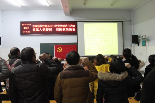 在学校党总支书记、校长李颂同志的带领下全体党员开展了重温入党誓词活动。